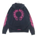 CHROME HEARTS クロムハーツ SWTSHRT HD ZIP バックホースシュー 袖フローラルプリント ジップパーカー ブラック/ピンク