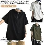 パーカー 夏 メンズ 夏 5分袖 ボリューム 半袖パーカー メンズ 夏用 ジップ ボリュームネック ハイネック 半袖tシャツ ビッグシルエット 韓国