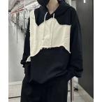 スーパーセール 30%off フェイクベスト ベスト パーカー メンズ フーディ ビッグシルエット 長袖 カットソー 重ね着風 ベスト トップス 黒 白 春 春服 秋 秋服 メンズファッション レディース ルームウェア ストリート おしゃれ ブラック グレー ベージュ