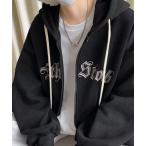 パーカー 「GROOVY STORE」ワイドシルエット レトロデザイン裏起毛ZIPパーカー 韓国系 メンズ レディース