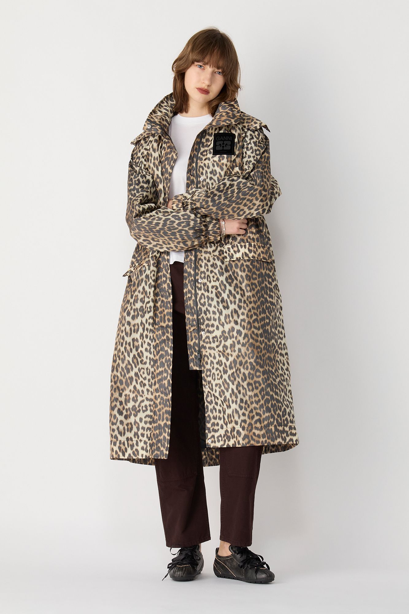 GANNI(ガニー)/Flyweight Nylon Leo Long Parka Print