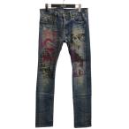 【送料無料】HYSTERIC GLAMOUR / ヒステリックグラマー HG STICKERSリメイク スリムストレートデニムパンツ KINKYJEANS ボトム プリント メンズ インディゴ ブルー size:w28 L32【中古】【006】