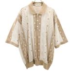 Pierre Cardin ピエールカルダン 90s リネンブレンド オールド 総柄 半袖 ニット ポロシャツ lL ベージュ系 メンズ 古着 中古