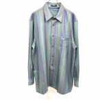 ピエールカルダン pierre cardin シャツ ストライプ 長袖 ボックスカット 毛100% LL XL ヘザーグレー×グリーン×ブルー×レッド メンズ