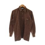 Pierre Cardin ピエールカルダン ウール 千鳥格子 長袖 シャツ L ブラウン系 メンズ 古着 中古