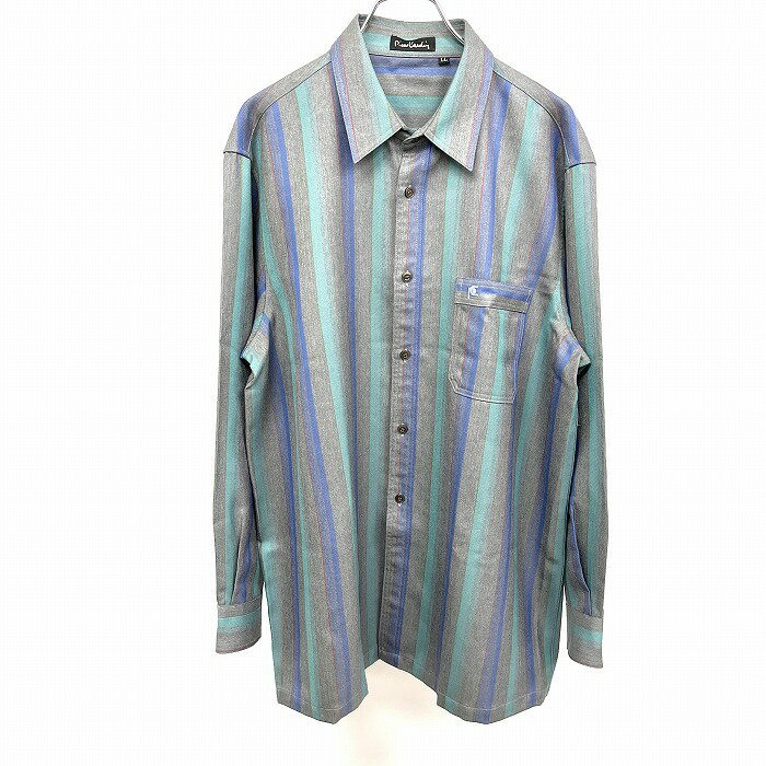 【楽天スーパーSALE限定!! \★35%OFF★/対象商品|12月4日(木)20時00分〜12月11日(木)01時59分まで】【中古】pierre cardin ピエールカルダン LL XL メンズ シャツ ストライプ 長袖 ボックスカット 毛100% ヘザーグレー×グリーン×ブルー×レッド
