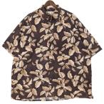 90's ピエールカルダン 半袖アロハシャツ ハワイアン メンズUS-2XLサイズ 総柄 モカブラウン系 sc-0209n