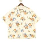 90's ピエールカルダン 半袖ハワイアンアロハシャツ ボックスシルエット メンズUS-2XLサイズ ベージュ系 sc-0636n