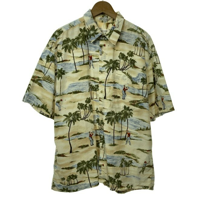 【中古】古着 ピエールカルダン pierre cardin 半袖 ブランド ハワイアンシャツ アロハシャツ メンズ 90年代 90s 葉 大きいサイズ 2L LL ビッグシルエット ゆったり ビッグサイズ オーバーサイズ コットン 薄ベージュ カーキ XLサイズ 中古 アロハ トップス | 春 2OF