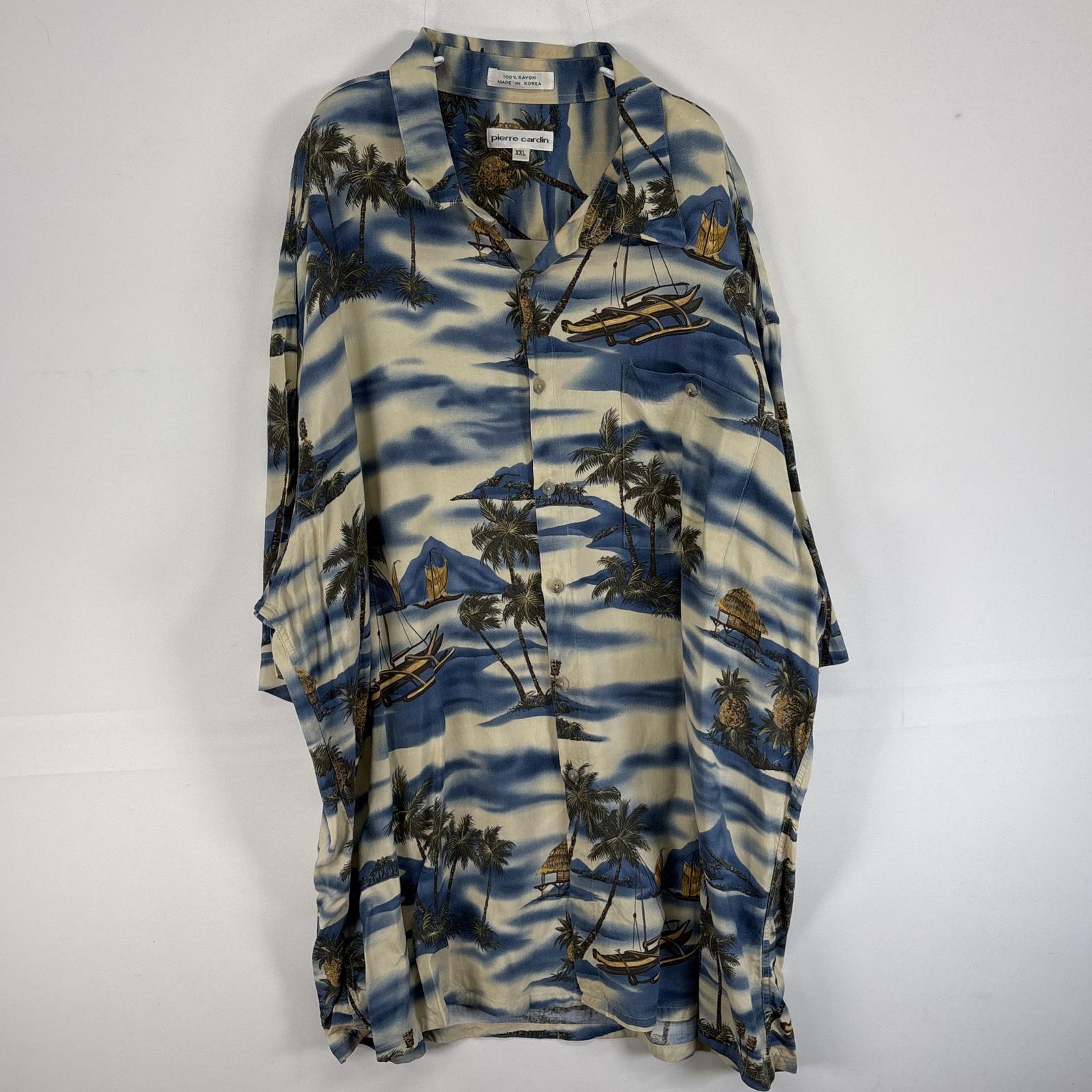 古着 pierre cardin 半袖シャツ アロハ風 ヤシの木 セーリング 大きいサイズ XXL ブルー系 総柄 メンズ 【中古】