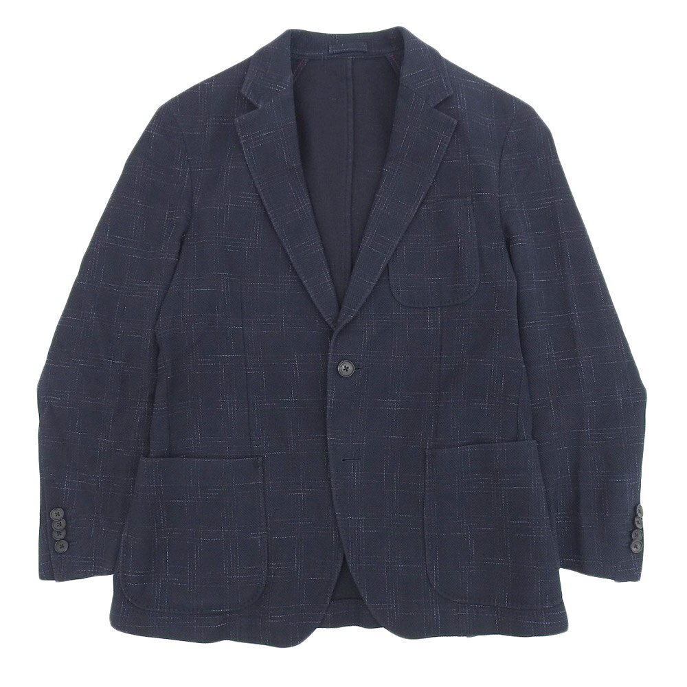 【中古】超美品 フェラガモ Ferragamo 2018年商品 ジャガード ピンチェック フォーマル テーラード ジャケット 48 M 紺 擦れ メンズ ビジネス 旅