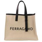 新品同様 FERRAGAMO フェラガモ ロゴ キャンバストートバッグ 24 1298 ベージュ ブラック メンズ 古着 中古