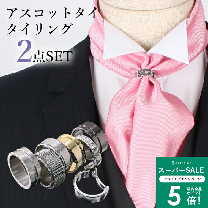 差がつく大人のコーデ アスコットタイ・タイリング 2点 セット シルクのような質感★マイクロポリ素材 タイ リング メンズ ネクタイリング [ネクタイ 無地 フォーマル ビジネス ブランド おしゃれ 結婚式 二次会 ブルー ピンク ネイビー シルバー] [M便 1/5]