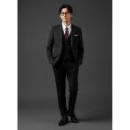セットアップ 「上下洗える/ベスト付」ヘリンボン スリーピース 2つボタン 上下ウォッシャブル ブラック メンズ