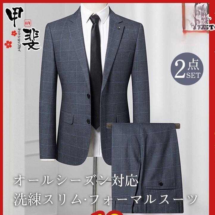 【期間限定10%OFF】メンズ スーツ ビジネススーツ フォーマル 事務服 2点セット ジャケット+パンツ カジュアル スリムスーツ 就活 通勤 結婚式 卒業式 セットアップ 礼服