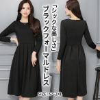 ブラック フォーマル ワンピース 喪服 礼服 きれいめ 黒 クルーネック フレア Aライン ドレス ひざ丈 長袖 20代 30代 40代 50代 レディース 無
