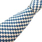 ブルガリ BVLGARI 美品 davide pizzigoni セッテピエゲ ネクタイ 絹 シルク 青 ブルー 白 ホワイト ひし形柄 ダイヤ柄 幾何学模様