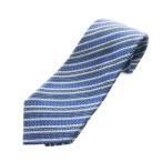 ブルガリ BVLGARI ネクタイ レギュラータイ ロゴ 総柄 ストライプ 絹 シルク 青 ブルー ■GY18 /MQ メンズ