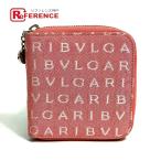BVLGARI ブルガリ ロゴマニア コンパクトウォレット ラウンドファスナー 2つ折り財布 キャンバス ピンク レディース【中古】