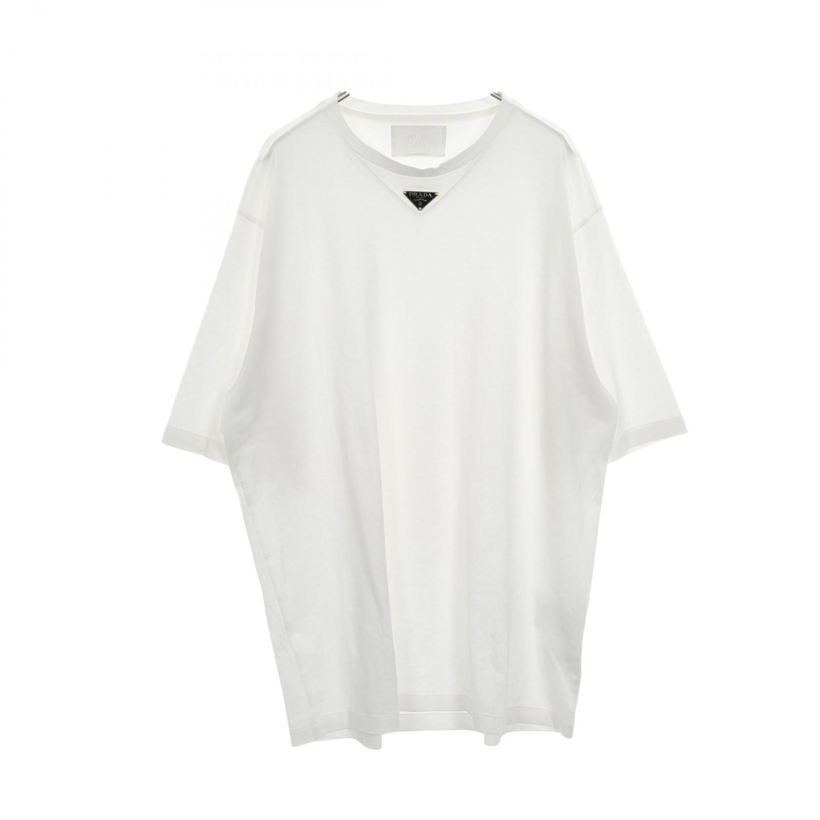 ◆全品5%OFFクーポン対象◆プラダ PRADA トライアングルロゴ カットソー 衣料品 トップス コットン メンズ ホワイト系 UJN861 【中古】
