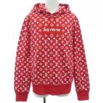 シュプリーム ルイヴィトン SUPREME LOUISVUITTON サイズ:XXL 17AW LV Box Logo Hooded Sweatshirt モノグラムボックスロゴプルオーバーパーカー(レッド)【411062】【SB01】【メンズ】【中古】bb422#rinkan*A