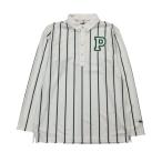プーマ PUMA ポロシャツ カットソー ボーダー ロゴプリント 半袖 M 灰 白 グレー ホワイト 1016 メンズ