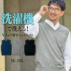 ベスト 洗濯機で洗える 薄手 Vネック ニットベスト M-10L 大きいサイズ メンズ ニッセン nissen