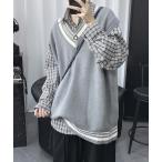 セーター ニット ワッフルニットベスト+ロングTシャツSET メンズ