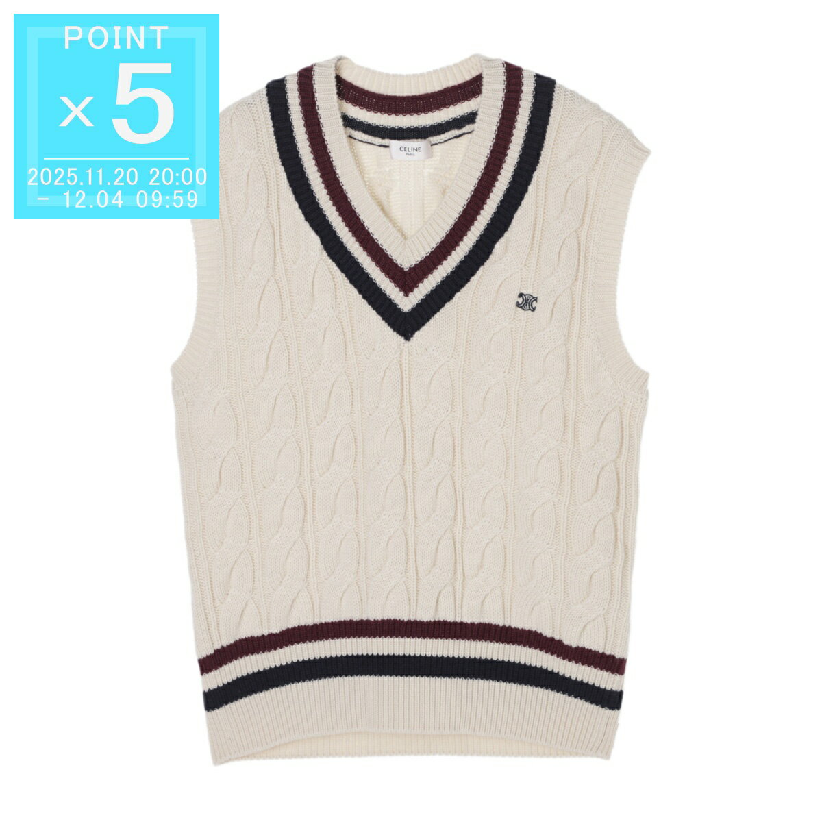 【アウトレット】セリーヌ CELINE ニットベスト ベージュ メンズ ry0bm d062 fzv1 PULL SANS MANCHES COL V【返品送料無料】[2025SS]