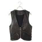◆まとめ買い|20%OFF対象◆プラダ PRADA CARPA OLD ヴィンテージ加工 レザージレ ベスト 衣料品 トップス ゴートスキン(山羊革) メンズ ブラック系 UPT121 【中古】