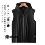 スポーツベスト ジレ 接触冷感 ノースリーブ フード付き パーカー タンクトップ メンズ 春夏 サマーベスト スポーツ 速乾 通気性 ひんやり トップ