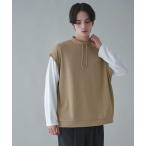 トレーナー スウェット ワッフルフェイクベストレイヤードプルオーバー メンズ