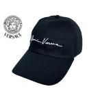ヴェルサーチ ICAP A233159 A2024 ホワイト系 筆記体ロゴ入り ブラック コットン ベースボール キャップ 58サイズ