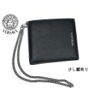 ヴェルサーチェ DPU8595S DVT4SS D41P チェーン付き ロゴ入り ブラックレザー メンズ ウォレット 二つ折り財布