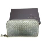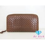 ボッテガ ヴェネタ BOTTEGA VENETA ラウンド ファスナー 長財布 イントレチャート レザー ゴールド ロゴ 二つ折り財布 【中古】bs3759
