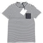 未使用品▲MONCLER モンクレール コットン100% 胸ポケット付き ボーダー 半袖Tシャツ ホワイト ネイビー XS イタリア製 正規品 メンズ
