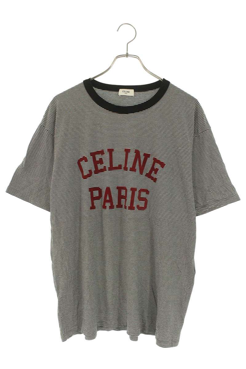 セリーヌ サイズ:XL 24SS 2X45M878Y.01AE フロッキーロゴボーダーTシャツ 中古 OM10