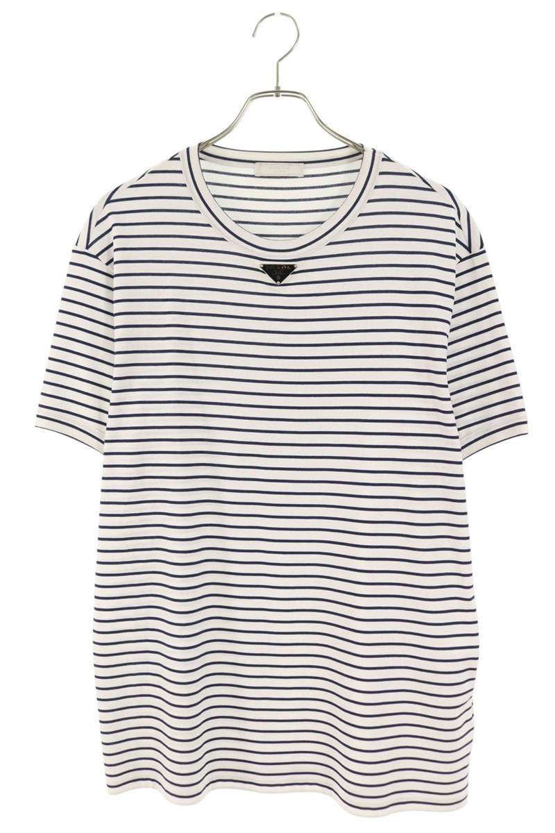 プラダ PRADA サイズ:XXXL UJN824 S222 111L 三角ロゴプレートボーダーTシャツ(ホワイト×ネイビー)【621152】【SB01】【メンズ】【中古】bb384#rinkan*B