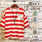 【10%OFFクーポン!3/26(木)1:59まで】NEXT WALL メンズ ボーダーTシャツ 半袖 5分丈 5分袖 ビッグ BIG オーバーサイズ クルーネック プリント カジュアル M L XL「822-108」【TM30】 トップス