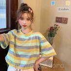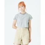 半袖 レディース ボーダー柄Tシャツ Tシャツ ショート丈 太めボーダー柄Tシャツ 太め縞柄Tシャツ へそ出し 短い 肌見せ サマーTシャツ 夏