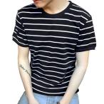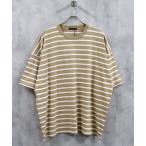 tシャツ ビッグシルエット 先染めボーダー クルーネック半袖Tシャツ メンズ