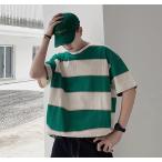 メンズ 新作品 ルームウェア ストリート系 ボーダー柄 Tシャツ スポーツ 半袖tシャツ オシャレ 切り替えTシャツ 韓国風 春服 夏服 ソフト 旅行