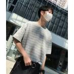 tシャツ エンボスワッフルボーダー柄半袖クルーネックTシャツ メンズ レディース