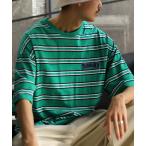 tシャツ Border long T-shirt with patch / NEVワッペン付ボーダーロングTシャツ unisex メンズ レディース