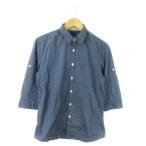 ピーエスポールスミス PS Paul Smith シャツ レギュラー 七分袖 コットン ドット 総柄 ロールアップ L 紺 ネイビー /AO19 メンズ