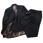 #wnc ポールスミス PaulSmith シングルスーツ 黒系 黄 赤 S3B サイドベンツ ストライプ ベロア調 日本製 メンズ [938294]