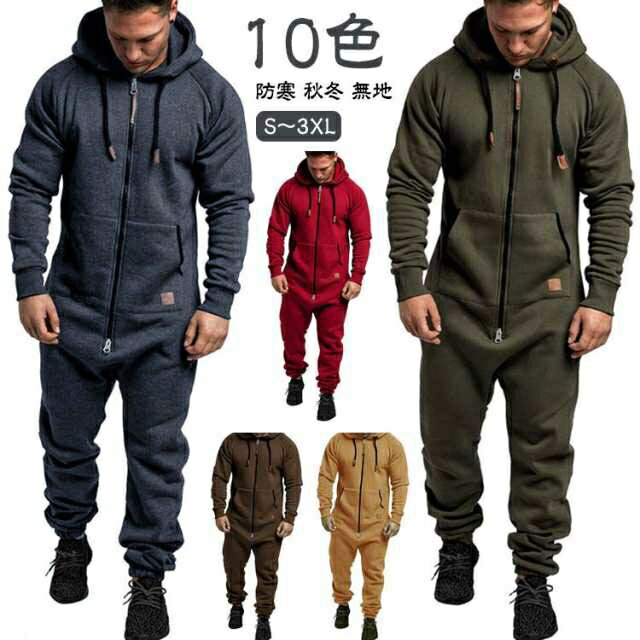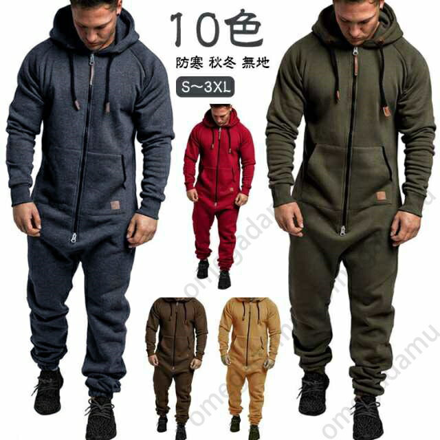 パーカー フード付きオールインワン 裏起毛 ワークウェア 長袖 メンズ つなぎ 厚手 ルームウェア パーカー リラックス ゆったり