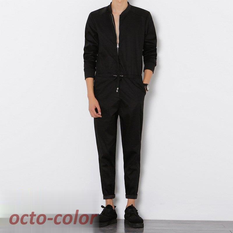 メンズつなぎ 長袖 オールインワン スタンドカラー 無地 ワークウエア ジップアップ