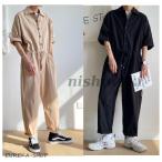 メンズ つなぎ 無地 サロペット おしゃれ オールインワン カジュアル 半袖 長ズボン ワークパンツ オーバーオール オーバーオール