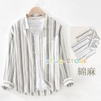 綿麻シャツ メンズ カジュアルシャツ ストライプシャツ トップス 長袖 清涼 爽快 春 夏 秋